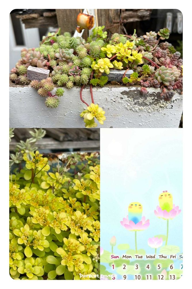 4日目は、ほのぼのと、マルバマンネングサとセダムの寄せ植え✨✨
