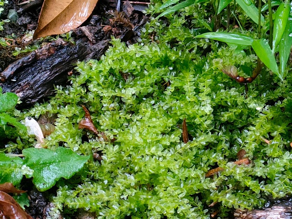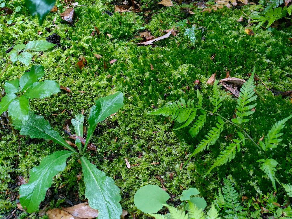 雨上がりで苔もシダも潤ってます。きれいですね。