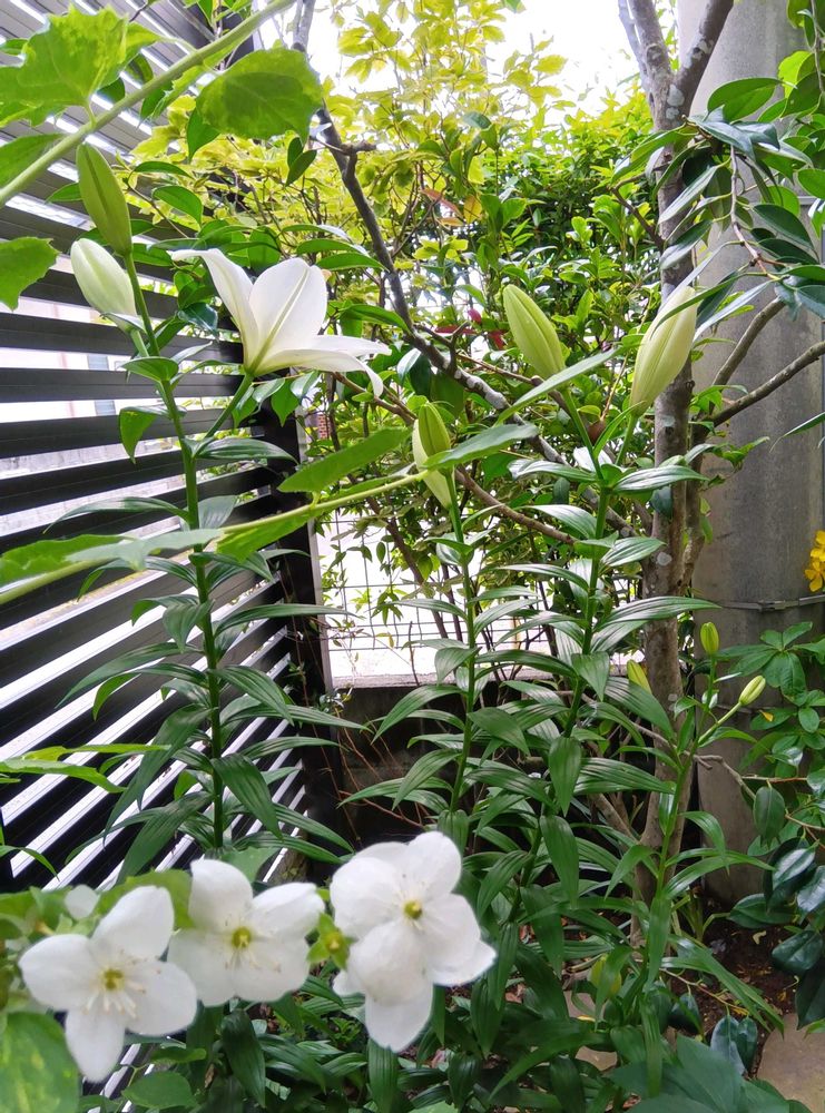 アオダモの下には、芍薬と牡丹の掛け合わせや、百合など植えているので、美女ゾーンと呼んでいます⚜️✨😁