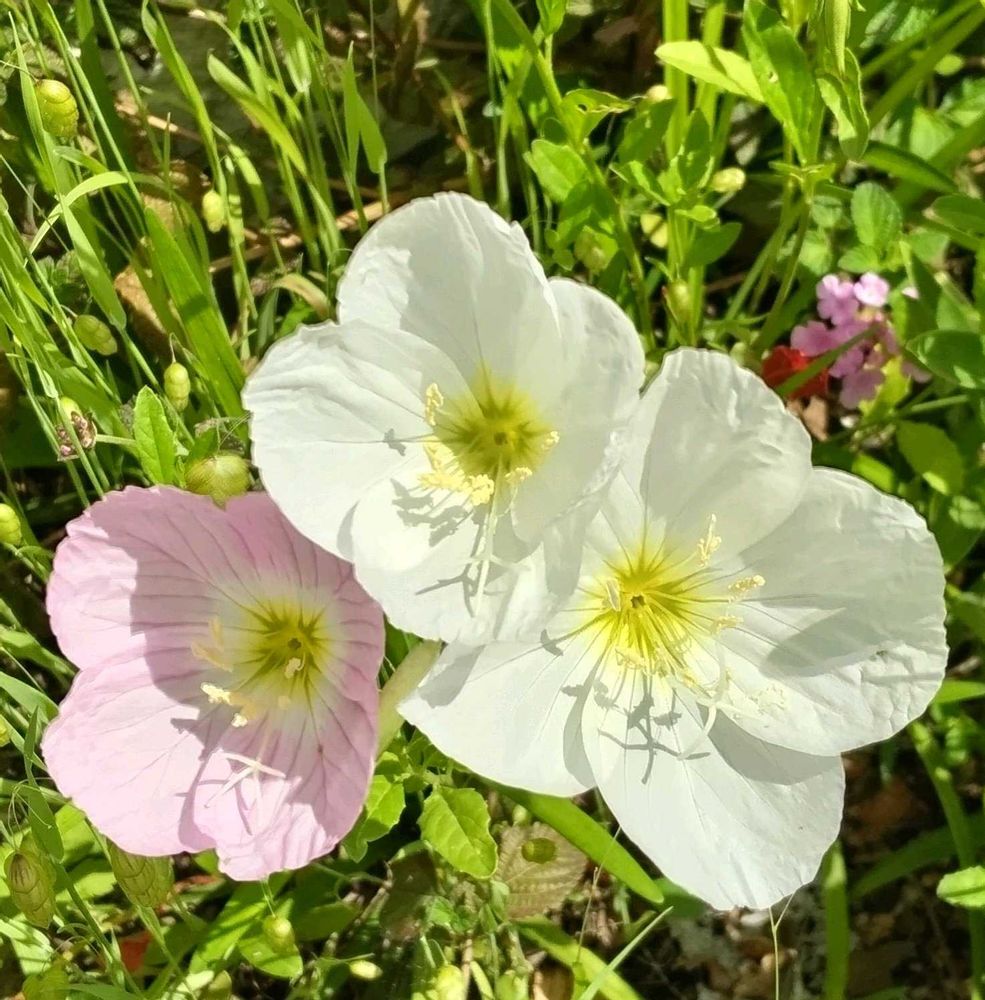 その中に白いヒルザキツキミソウが数輪混じっていました❗️