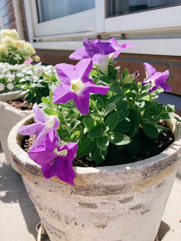 お迎え1週間 もう咲いてきたサフィニアサマー💜