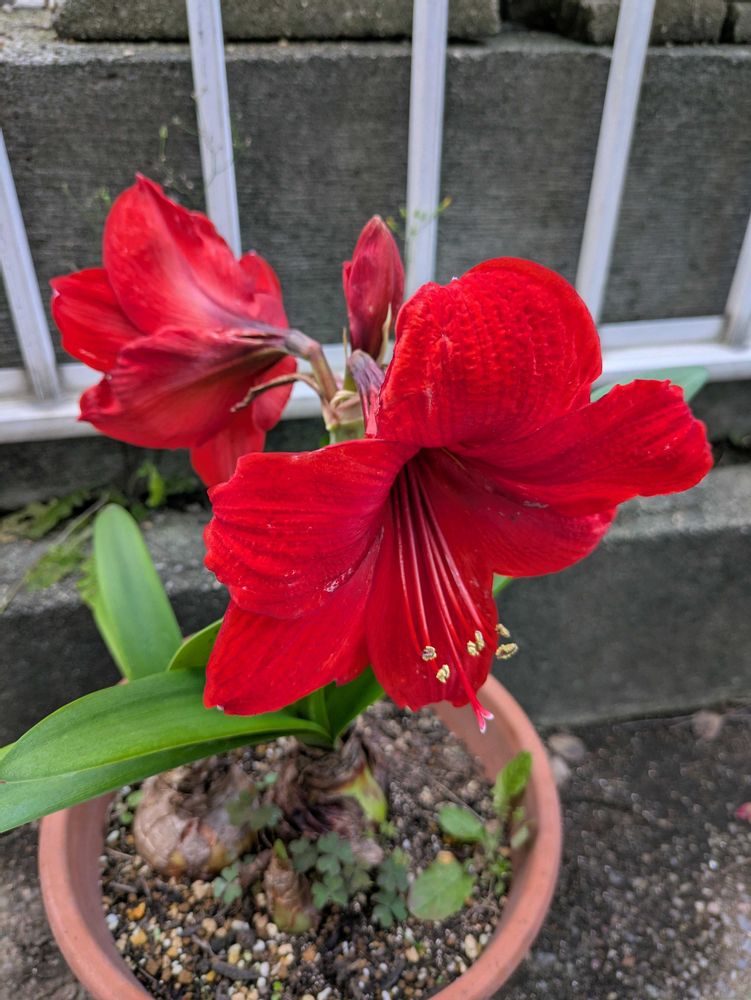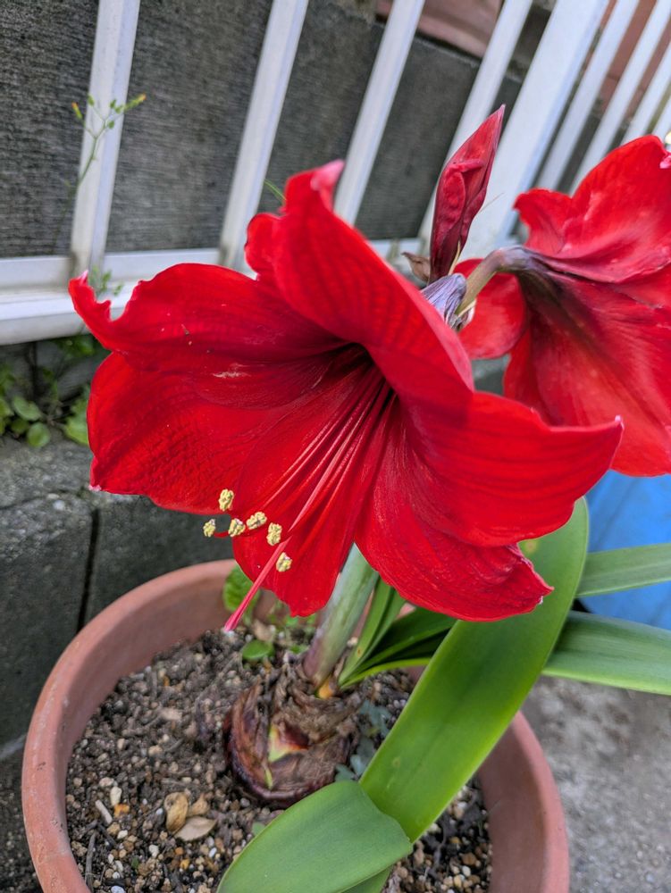 我が家のアマリリスは20年位経つのですが、植え替えを忘れるせいか今年は咲いてませんね🤔