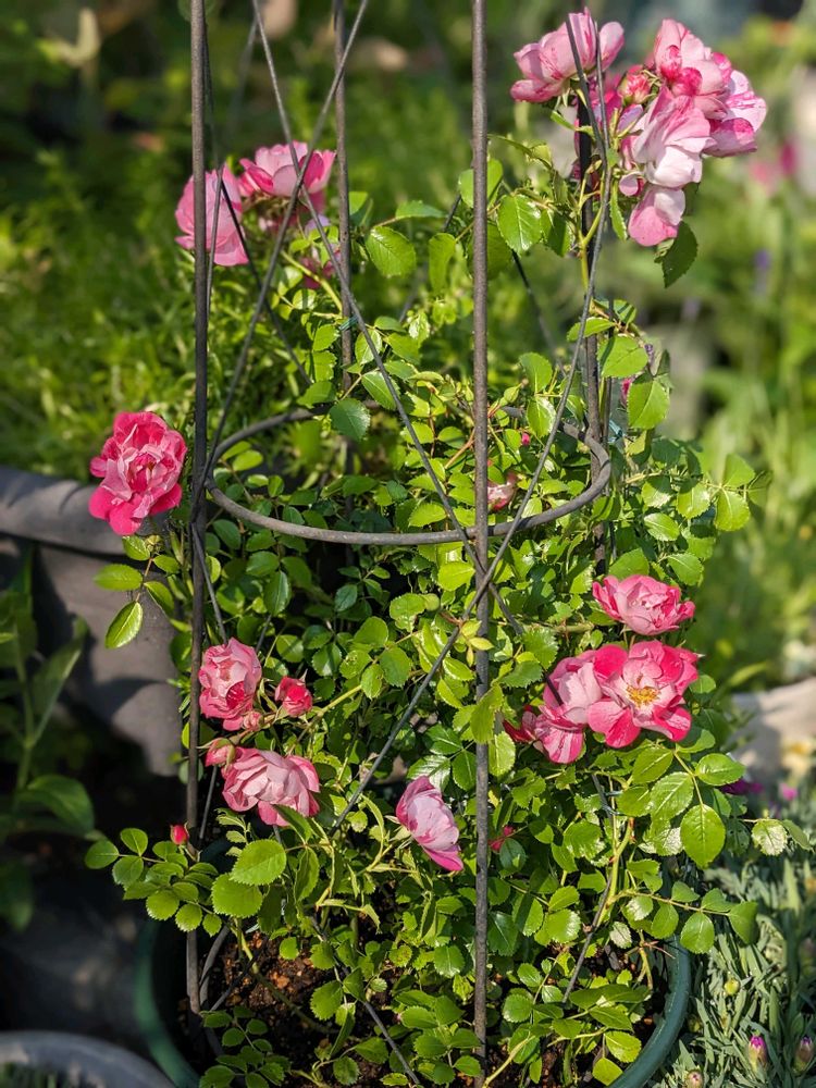 グランドカバーにも…という事でしたが、狭い我が家のスペースでは、「ちょっとなぁ〜🤔」と鉢増ししてオベリスク仕立てにしてみました🤗💖