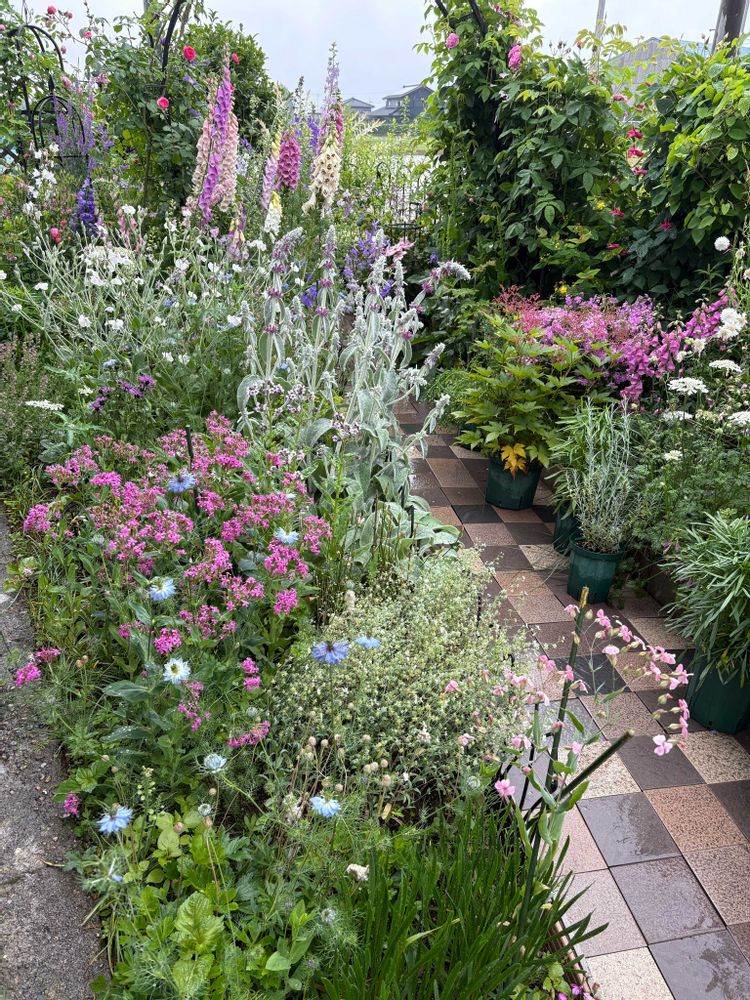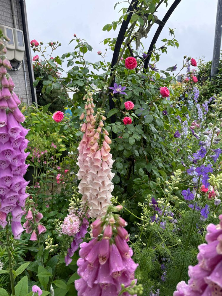 2️⃣ジキタリスや千鳥草、クレマチス アラベラの辺りに薔薇ポンポネッラが咲いてきました
