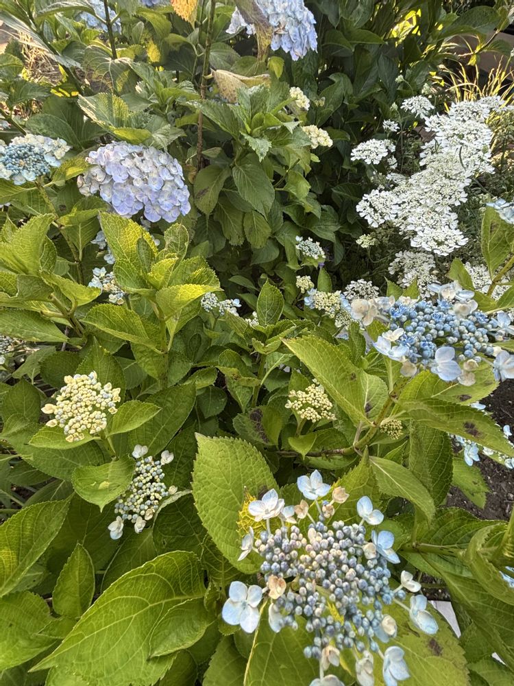 湖畔のこの水色は 本当に綺麗💓 後ろの子も手毬咲きの水色だけど 綺麗に咲く前に 茶色があちこちに😢