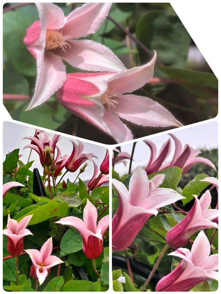 チューリップ咲きで、それぞれ個性的な美しさがあるクレマチスさんたち(*'▽'*)🎶