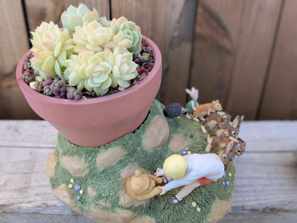 この鉢が可愛いくてお気に入りなんです(,,>᎑<,,)プーさんを皆で引っ張ってる🤭