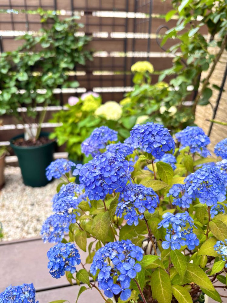 昨年お迎えした時は、もう少し水色っぽかったと思うのですが、綺麗なブルーで咲いてくれました💙紫陽花は難しいですよね〜💦今年は手入れが全然出来てなくて、ブルーの紫陽花が他にもありますが、お花も小さかったり、ブルーで咲くかどうかというのもあります😓