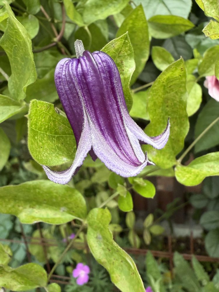 折れたとて、そこは紫のタコもといクレマチスなので茎の内部は繋がっている。