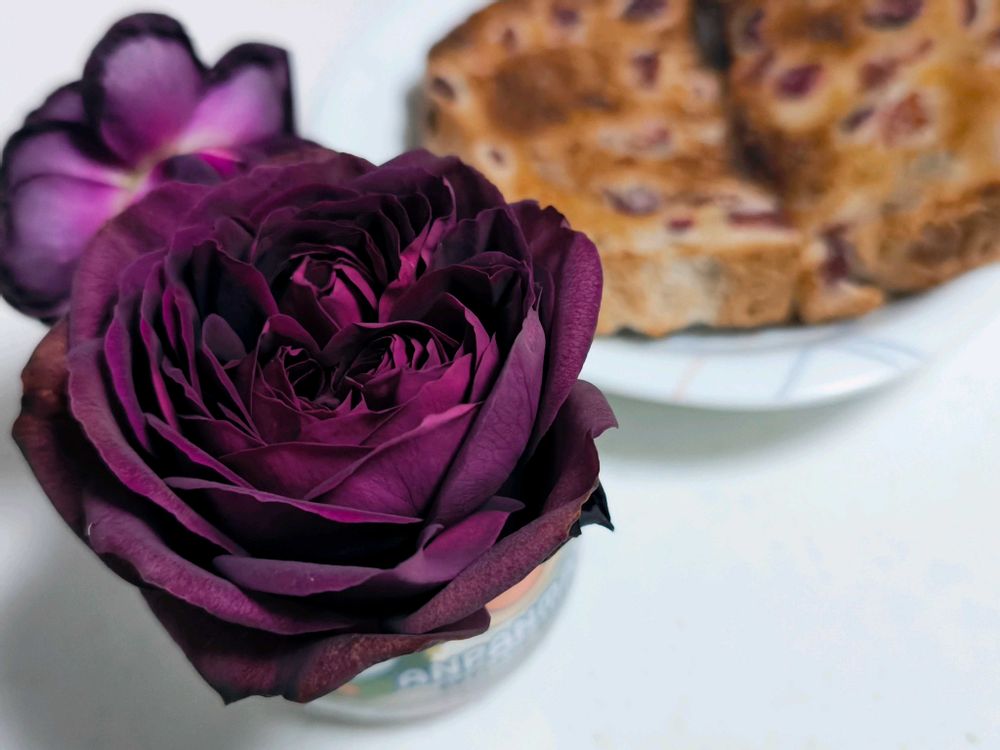 昨日はバラを見ながら優雅にパンを食しました🌹🍞