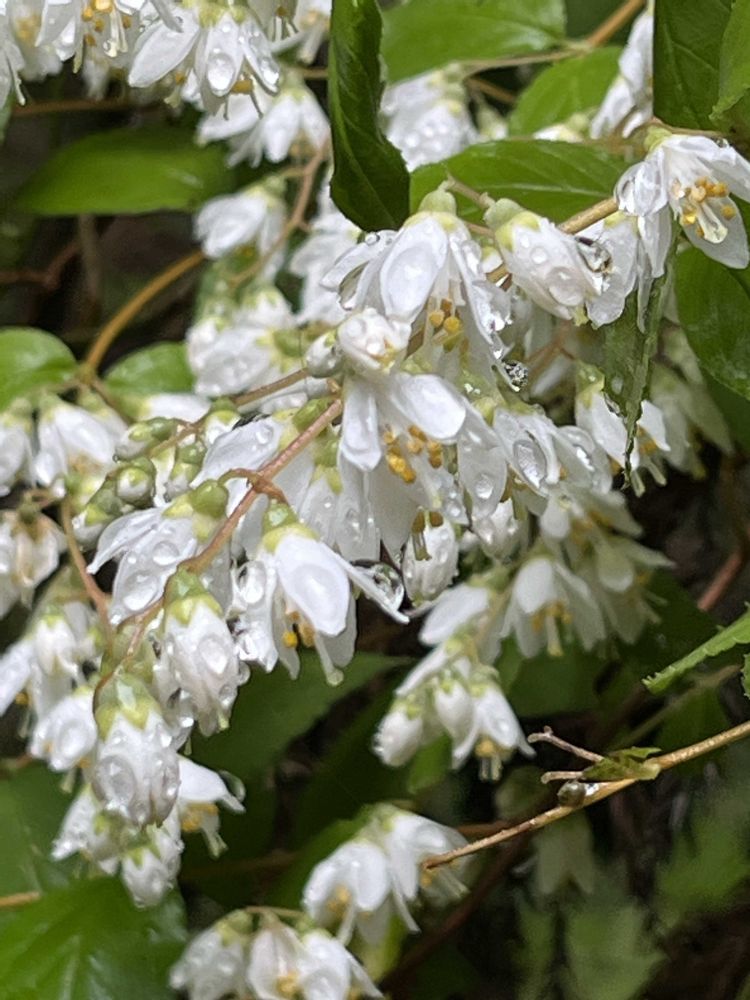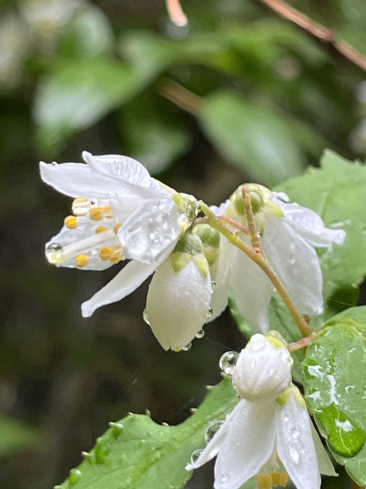 ……日曜日に山へ散歩に行ったときは山のほうには雲がかかって時折り霧雨が降る天気でしたが、🤍ヒメウツギやヤブヘビイチゴ🍓、🌼コバンコナスビが雨露に濡れて艶やかでした😊