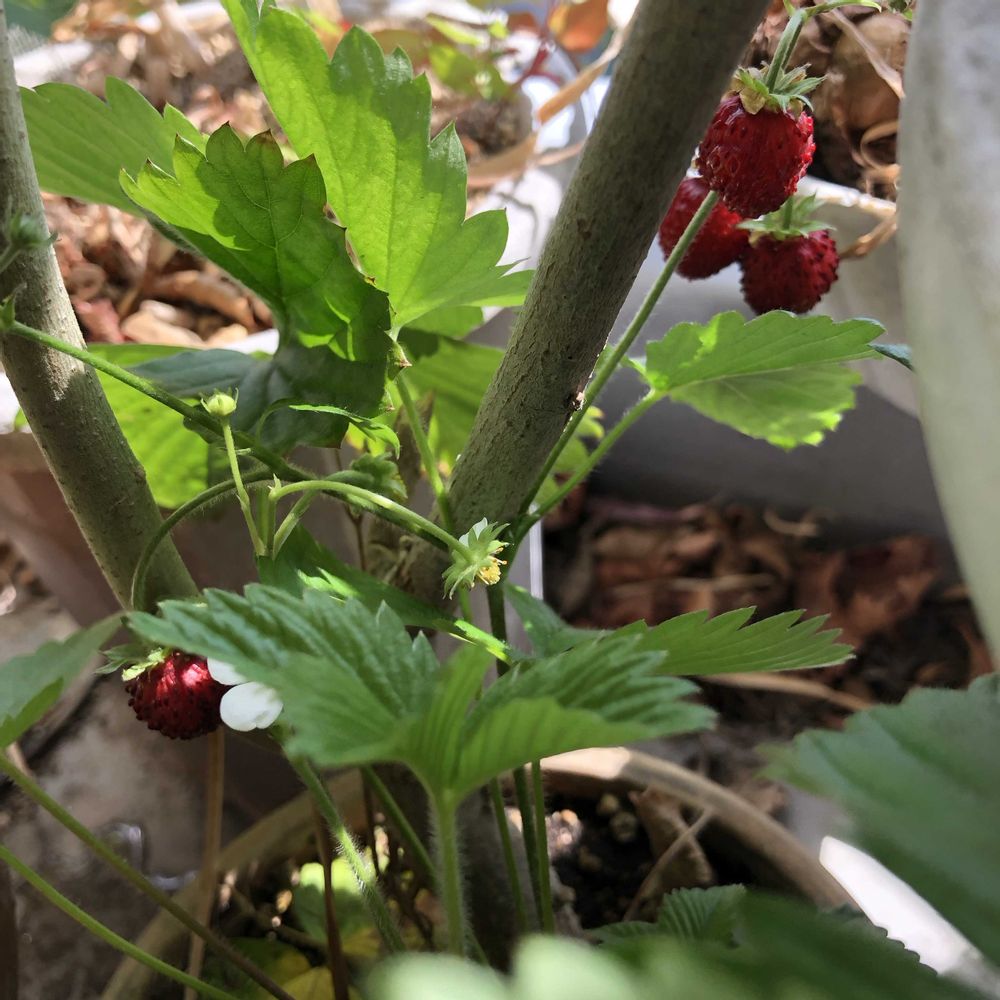 ワイルドストロベリーがひっそりと実っていた。ちゃんと甘酸っぱかった。