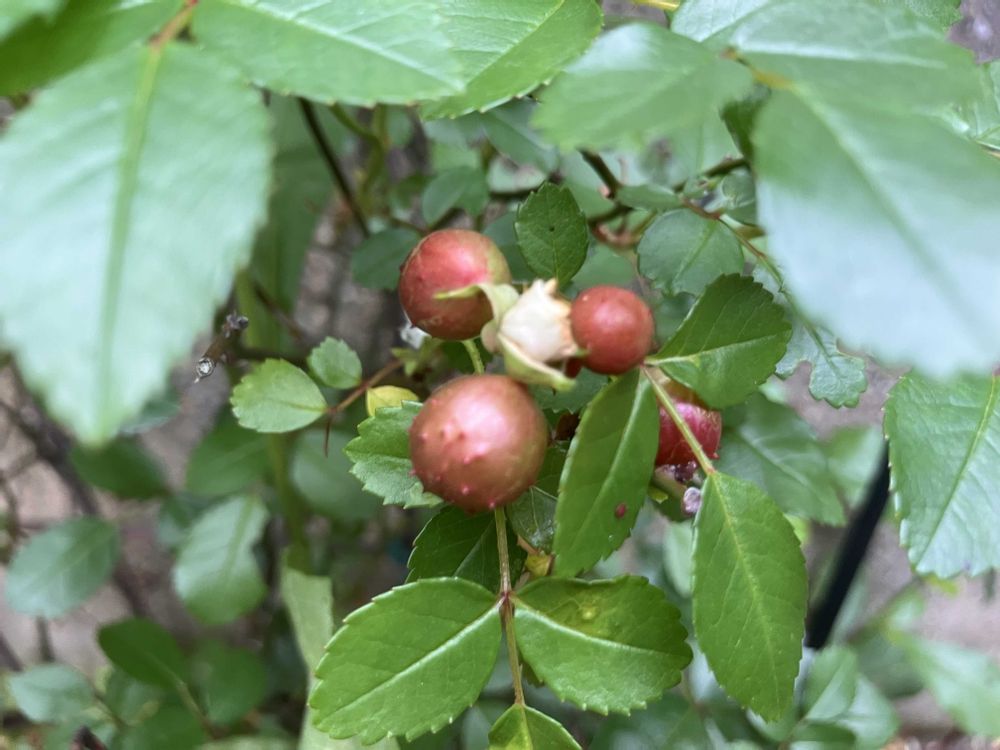 実はそれはバラハタマフシと言う蜂が卵を産み付けて、寄生されて薔薇の組織に異常が出て膨らんだ、虫コブなんですよ
