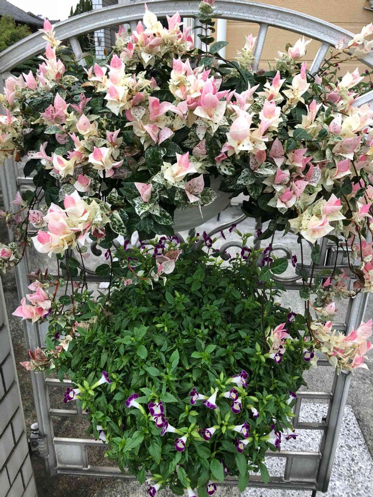 今年の夏は猛暑で門扉の花はハツユキカズラとトレニアです‼️