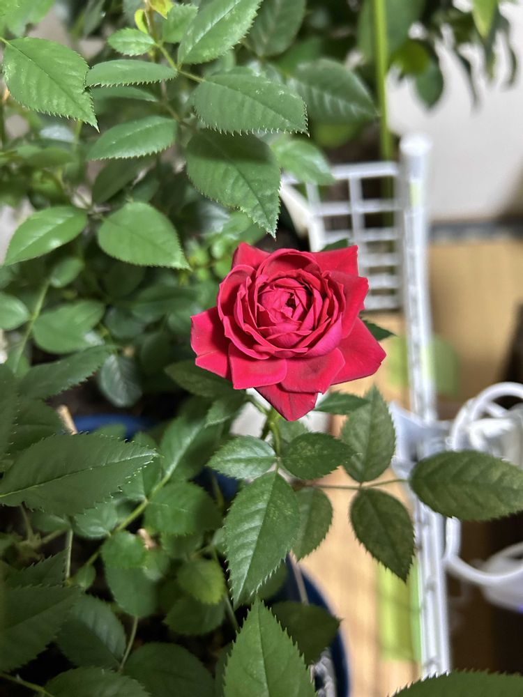 冬場の切り戻しからLED育成ライトのみでミニ薔薇の花が咲きました♪