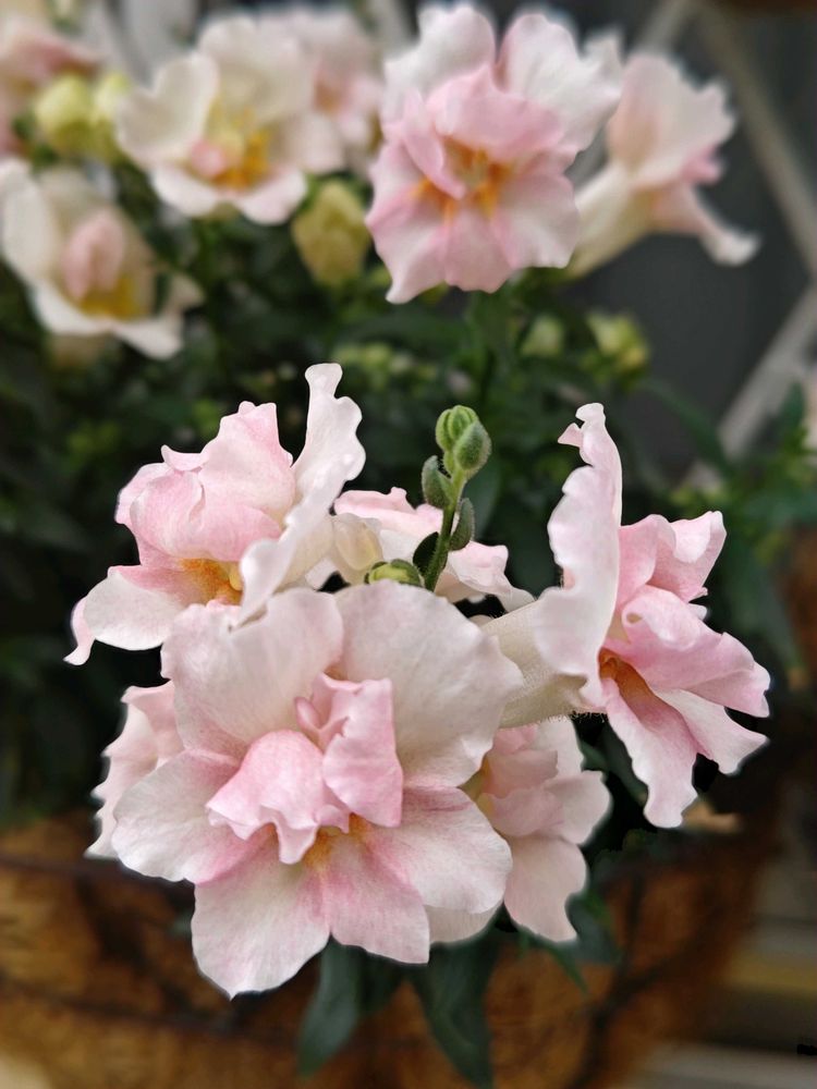 今日のお花🏷️の、キンギョソウ。淡い色のピンク、大輪の花。散歩コースの街路樹🌳の下のプランターで咲いていました。(2025/5/11撮影)