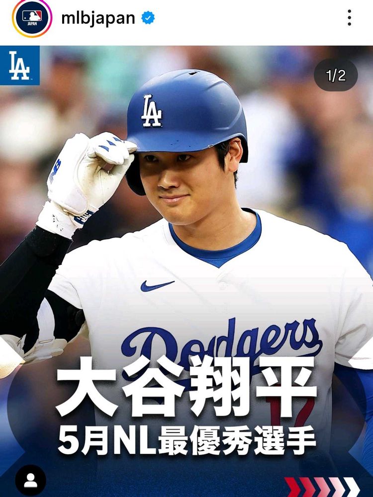 大谷選手、5月ナショナル・リーグ、最優秀選手おめでとう🙌