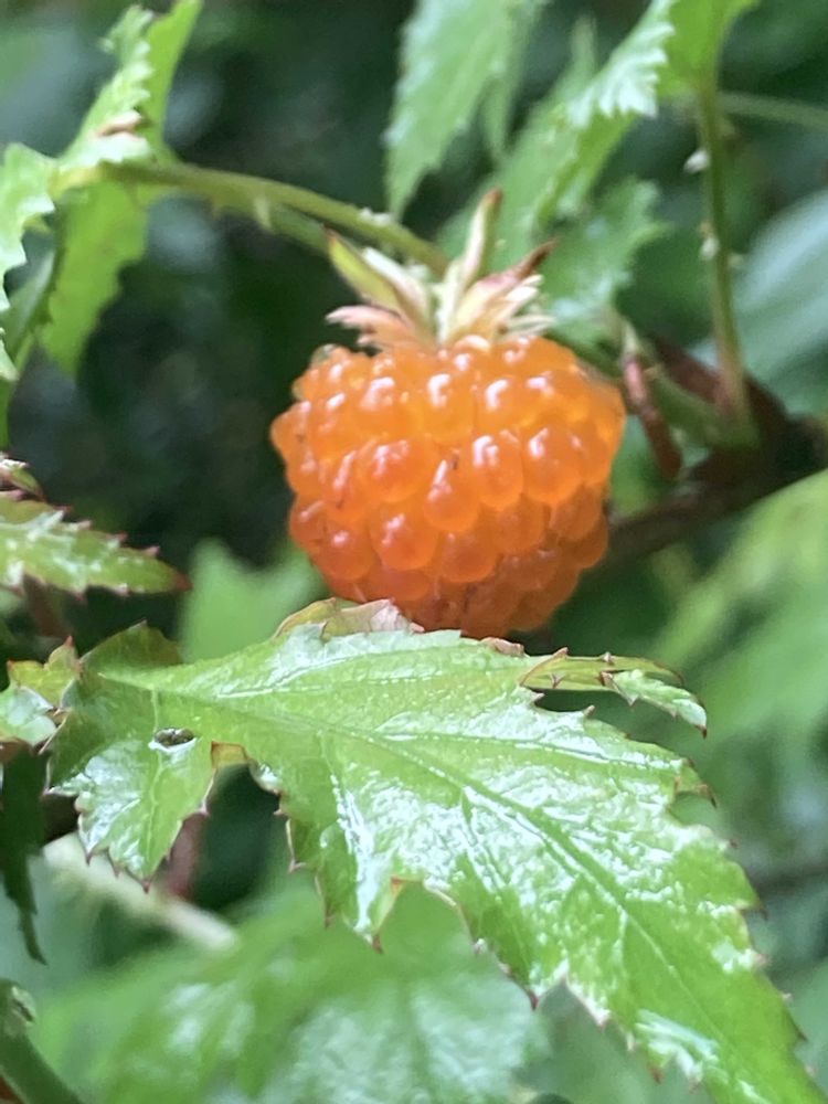 モミジイチゴ🧡 透明感がある鮮やかなオレンジ色で、プチプチして綺麗です♡