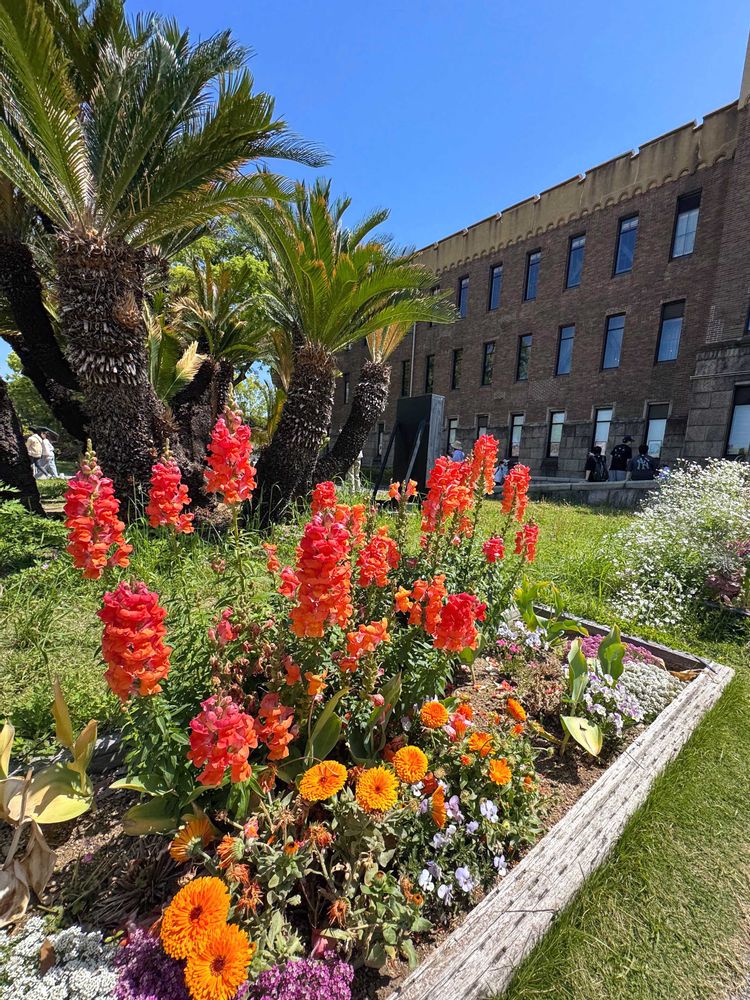🧡①大阪城ミライザ(旧第四師団司令部)のレトロな建物と花壇のキンギョソウさん♡