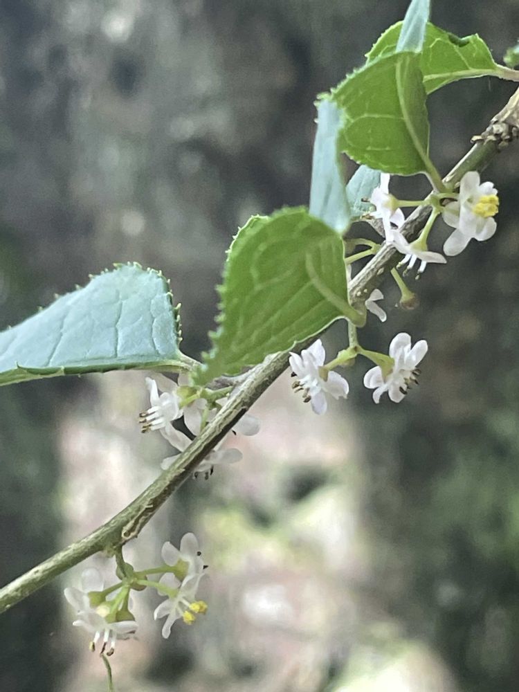 ウメモドキは実を付けると赤い可愛い実が目立ってますが、花は初めての出会いでした⚪️💚