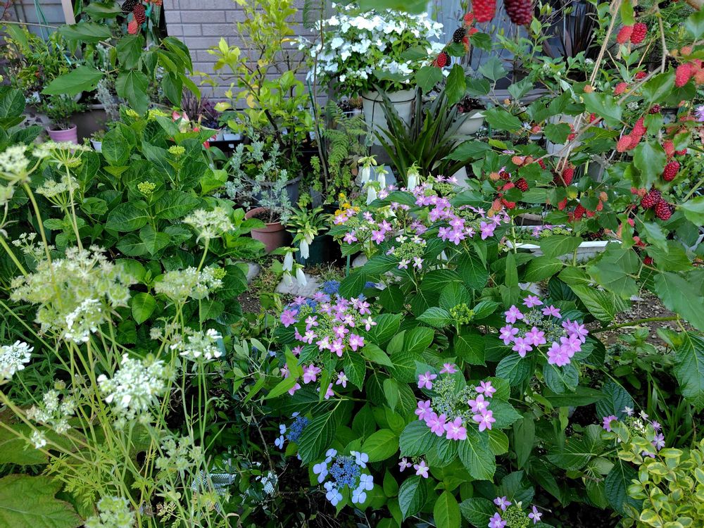 アマチャの青色と、ダンスパーティーのピンク、色分け肥料等使ってないんですけど、良いわ〜。