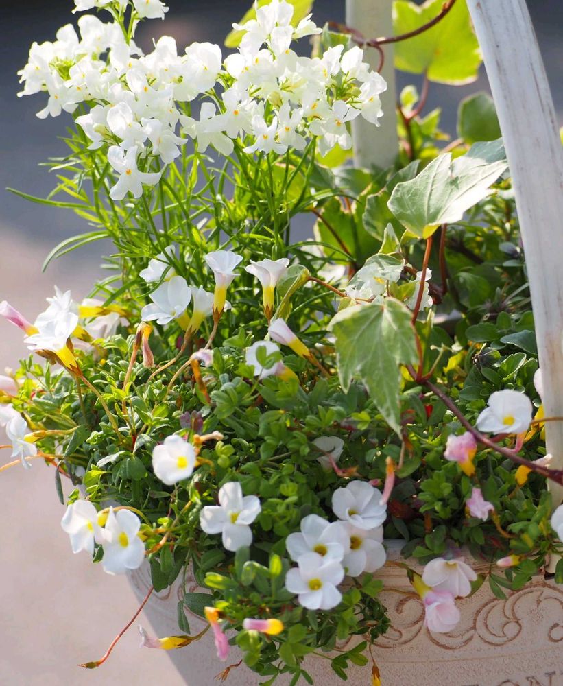 リナリア↑とオキザリス↓の寄せ植え🤍🤍🤍