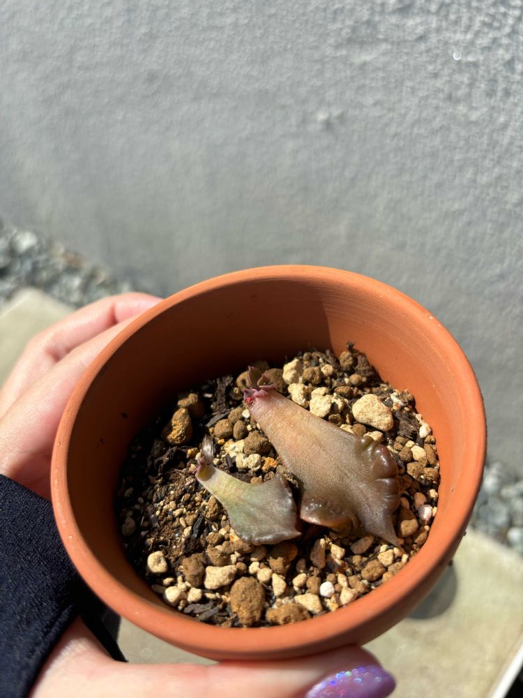 お向いさんから貰った多肉の葉っぱ、土の上に置いておいたらいつの間にかこんなに芽が出てたよ🌱