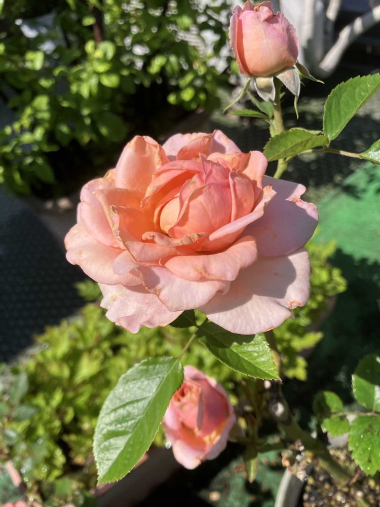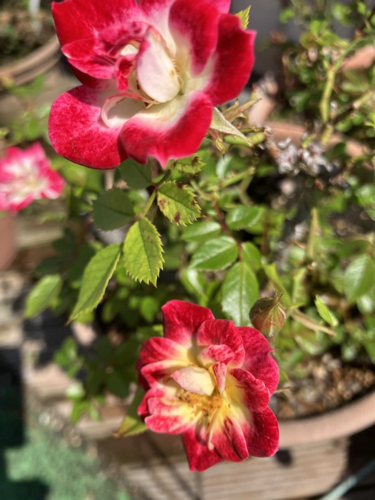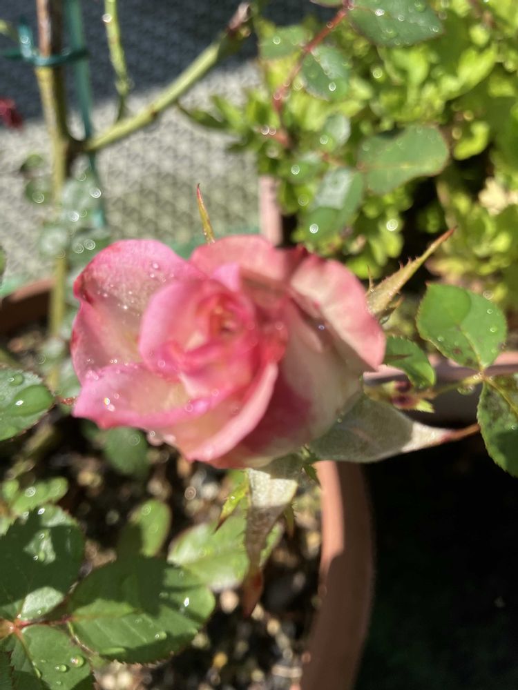 今日も暑くなりそうです 薔薇の二番花が少しだけ咲き始めました