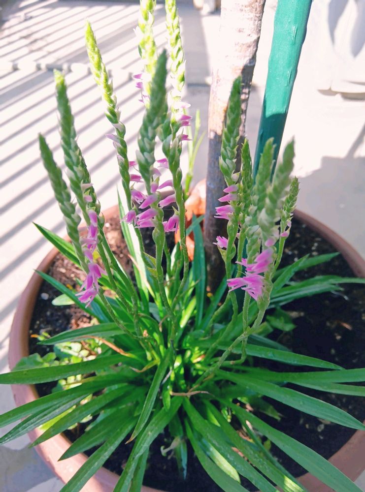 最近、草原で見かけなくなりつつあるネジバナが植木鉢に!綺麗に咲いていますね〜