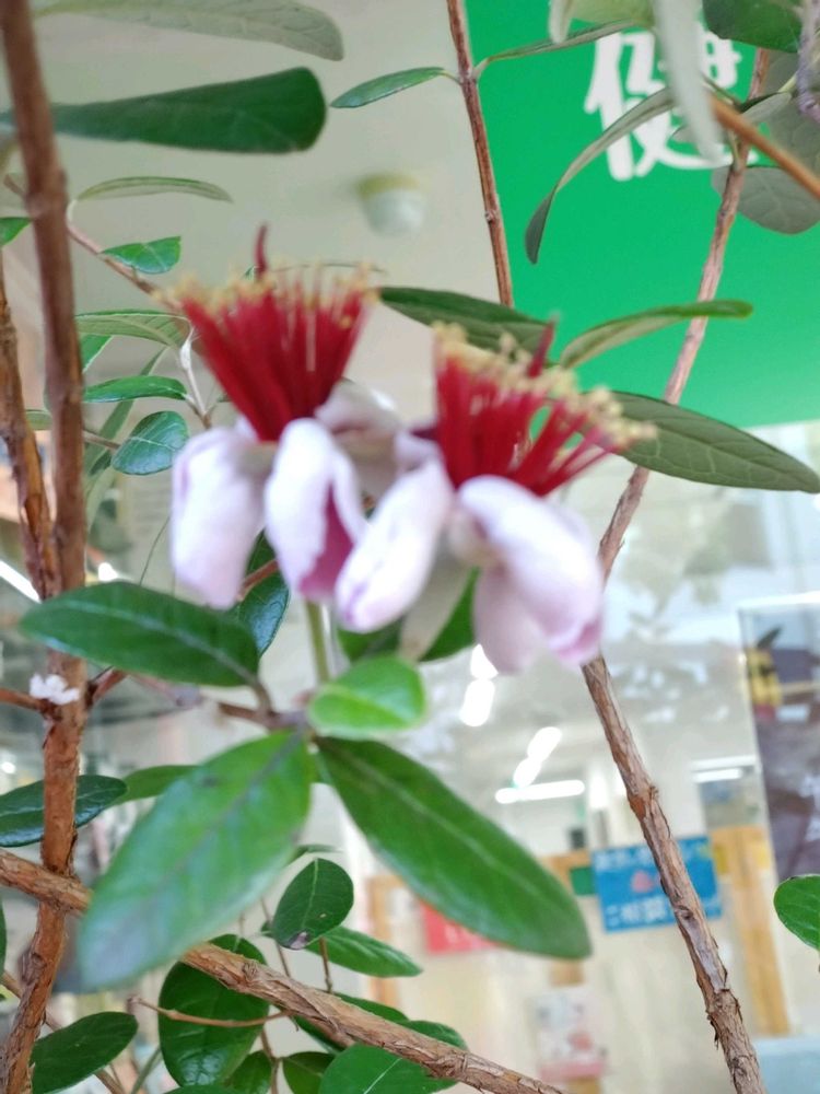 ❸薬局のフェイジョア2個だけ咲いていました🩷
