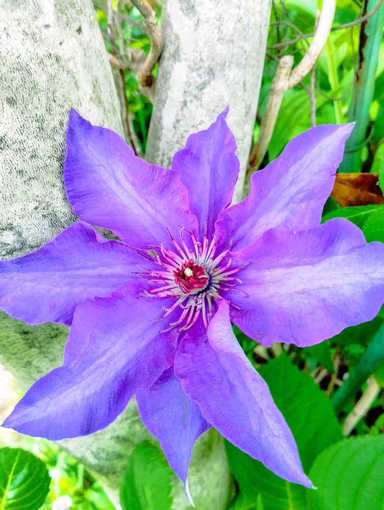 ❺10年前に地植えした紫色のクレマチスが咲きましたが色は好きですが花が大きすぎるので余り好みでは無いです😅