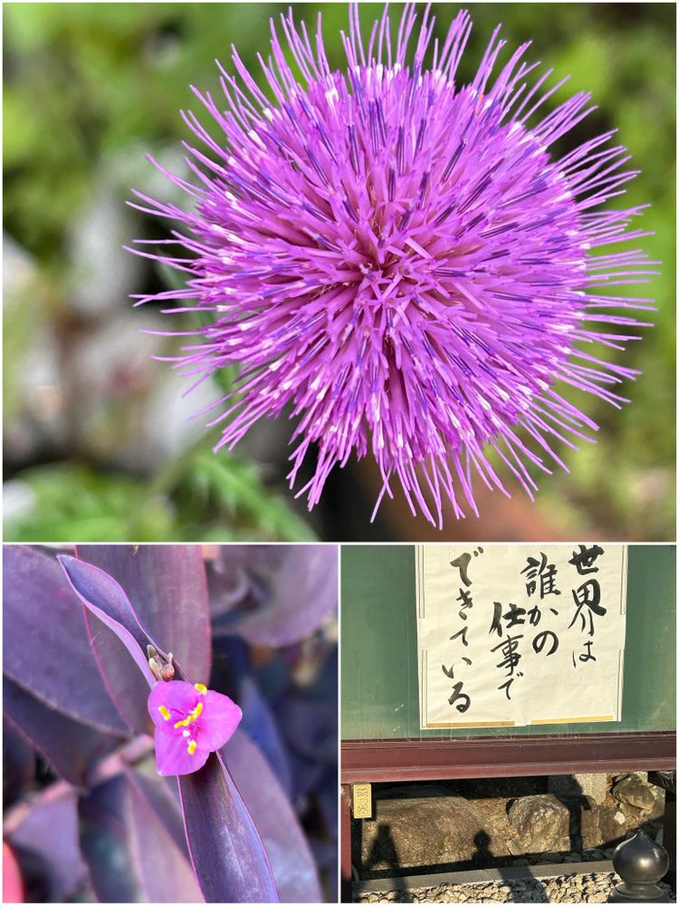 アザミは母が好きだったお花です💕😍お寺さんの有難いお言葉も、紫御殿、キンギョソウも、素敵なPicありがとうございます😊