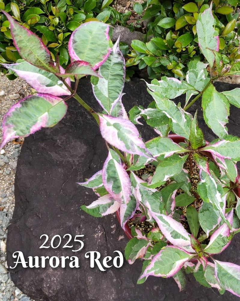 今年も 咲かなかったオーロラレッドの葉のほうが 紫色の斑入り葉みたいになっています (^^;