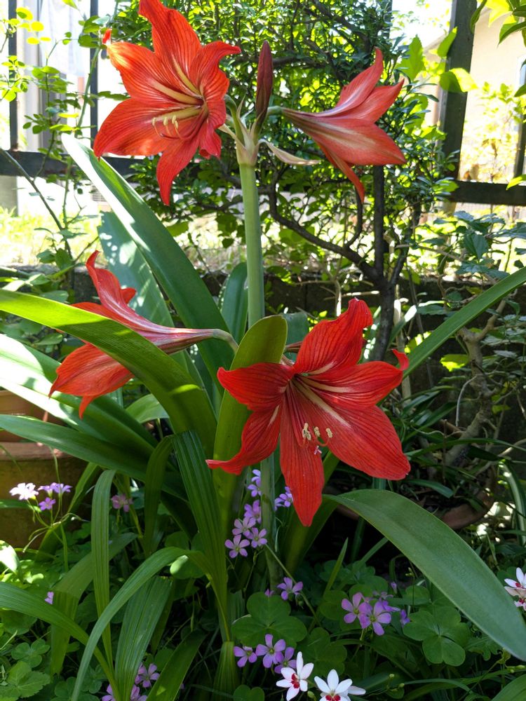 庭では真っ赤なアマリリスが次々と咲き始めているね👏🥰