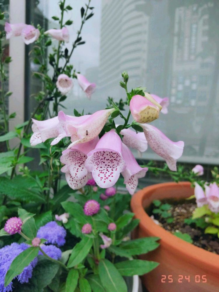ゴマノハグサ科のジギタリスです。キツネノテブクロの別名があります。ただ、葉や茎、花すべてが有毒です。