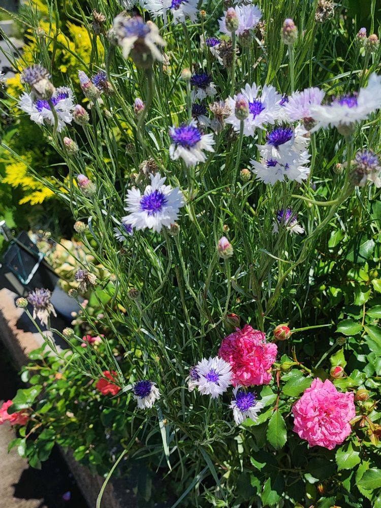 ずっと咲いている矢車草、適宜切り戻して背が低くなってきました。ドリフトローズとちょうどよくコラボしてくれています。