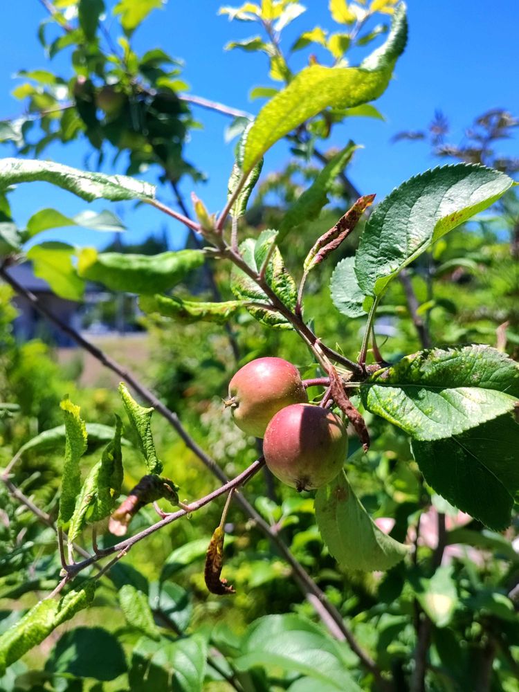 リンゴの実がだいぶリンゴらしくなってきました。ミニサイズだけど可愛くてテンション上がります。観賞用ではなく、食用のアンビシャスという品種です。完全放置ですが、この後食べられるくらいまで実が残ってくれるといいなぁ...笑