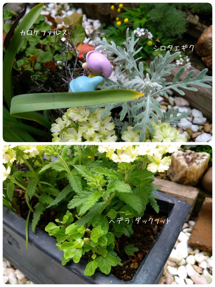 終盤のシエルブリエを種取り用の鉢へお引越しして、残りのキンギョソウなどに、先日の戦利品を足してリメイクしました🧤