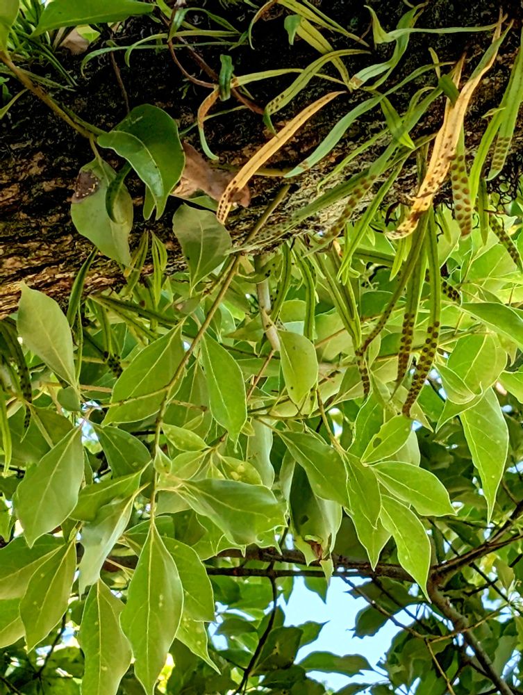 よーく見ると…細長い葉っぱの先に斑点模様…