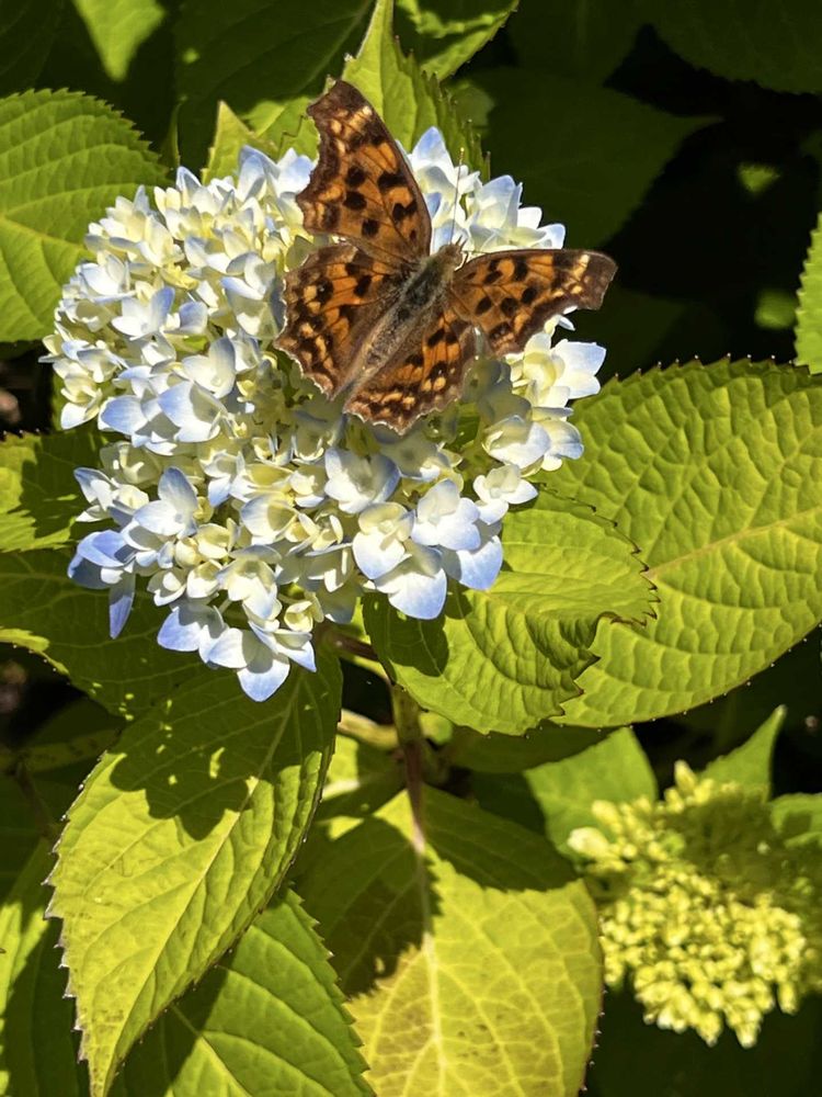 ブルーベリーの実,咲き始めの紫陽花に蝶々,マイガーデンの投稿画像