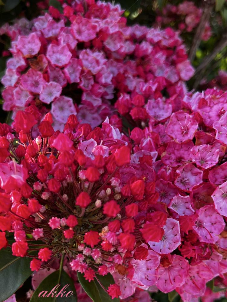カルミア育ててはいないのですが好きです❤️でも、こんなに濃い色のカルミアは初めて見ました😍