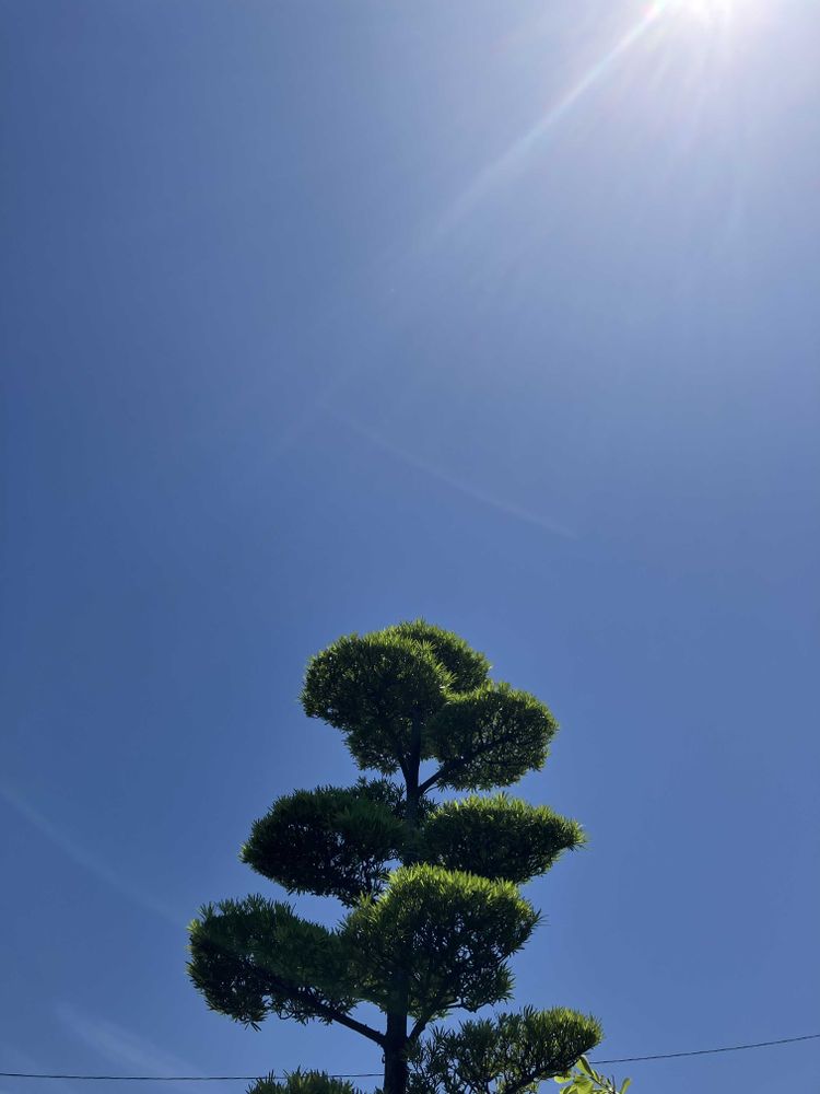 ⒌ 雲ひとつない青空に槙の緑がきれ
