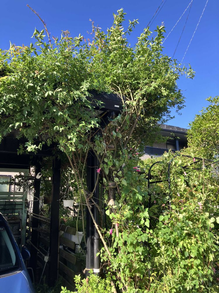 昨日今日で花が終わった木香薔薇の剪定作業。変わったのか?だいぶ切ったがまだまだモリモリ…変わって無いようにも見えるけど、ゴミ袋大に四袋。明日はカーポートの上に出ている分をカーポートの屋根に登って切る予定