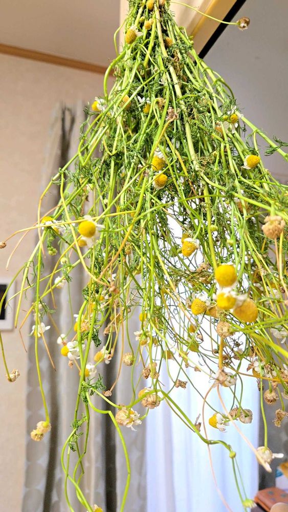 おみやげにキンセンカ③カモミールを頂き、スワッグにしました④