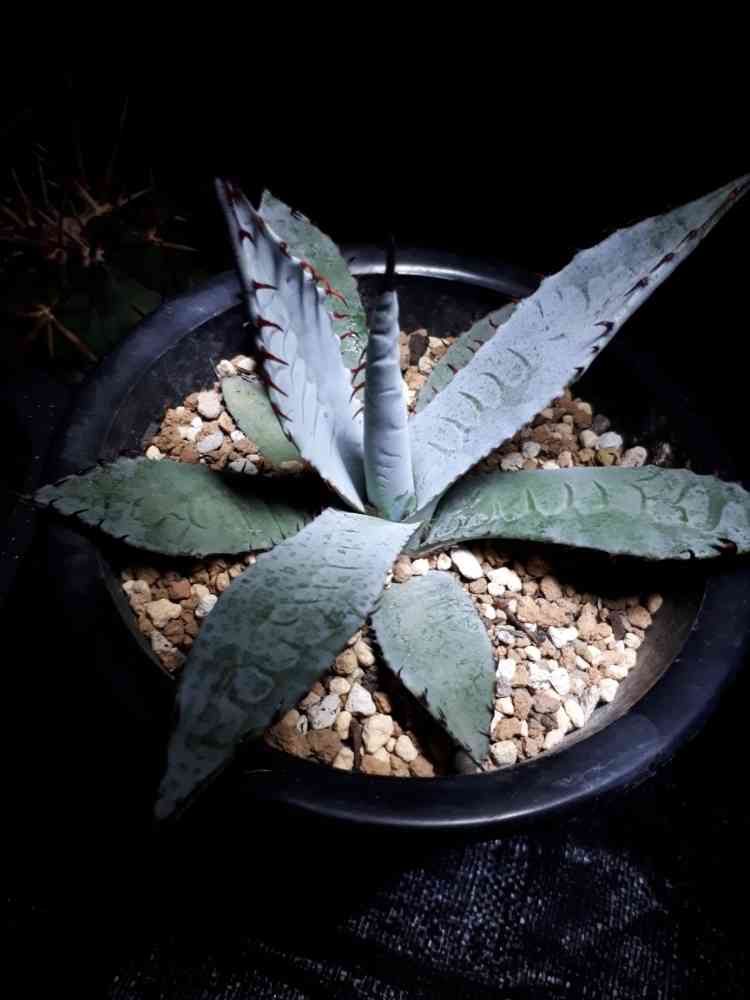 今夜の1枚、アガベ・屈原の舞扇🌱このトゲ❗このウォーターマーク❗カッコイイですよね😆サイズは小振りですが、小さくてもこの迫力はいいですよね~先日しいれてきました👍