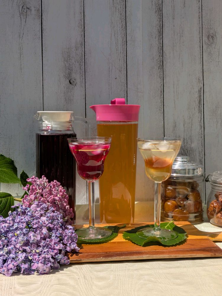 梅ジュース、赤紫蘇ジュース、グラスの演出で一段と美味しそうです😋😋😋