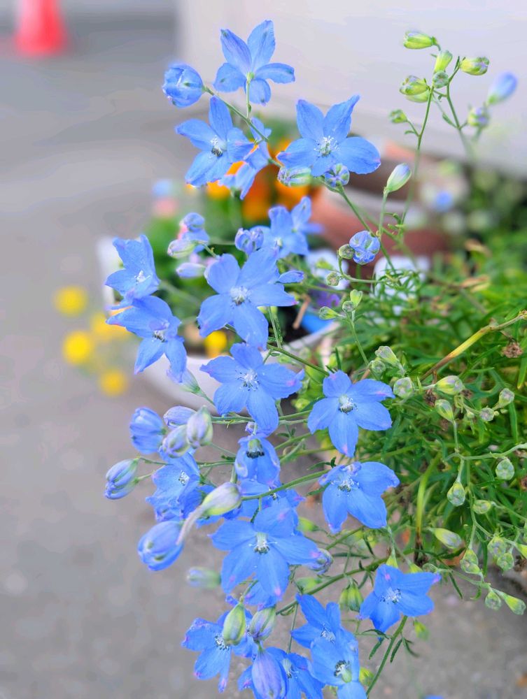 鮮やかな青色と上向きに開花する性質のデルフィニウム。2年株で去年よりも花のボリュームが凄いです。場所の都合で日陰で管理してましたが、蕾が開いてきたので日向に移しました。