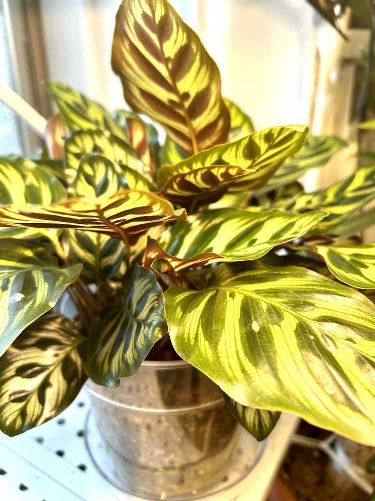 元気すぎ😀カラテアマコヤナ😊葉っぱがどんどん出てきて5号鉢で50枚を超えました😊どうなることやら🤔