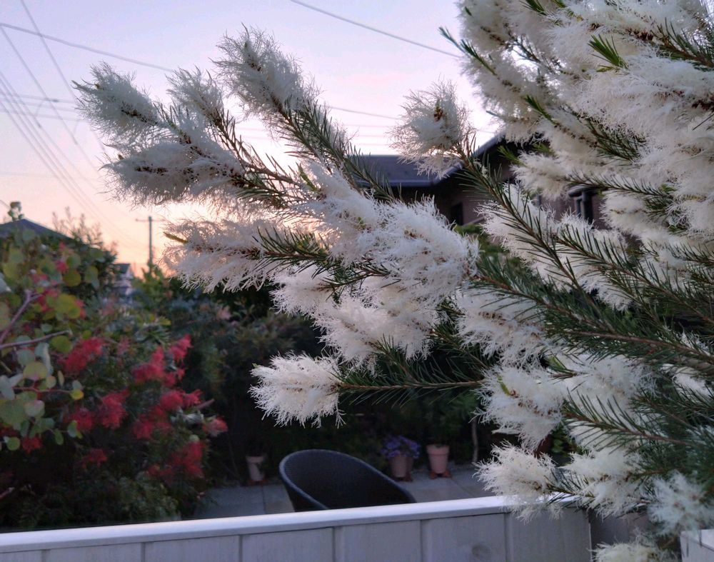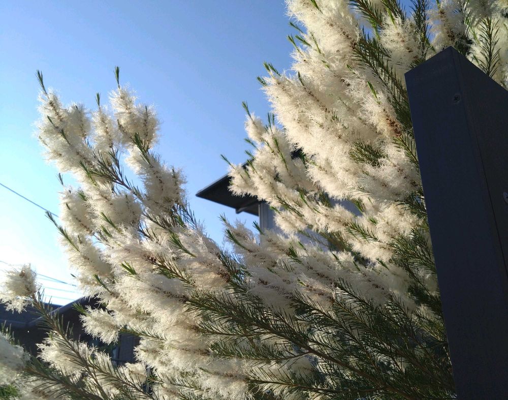 すご❗️うちの伐採してしまったメラレウカと全然雰囲気違う😢品種が違うとここまでかわるものか、同じ白い花でもこんなに綺麗だったら切らなかったのに💦