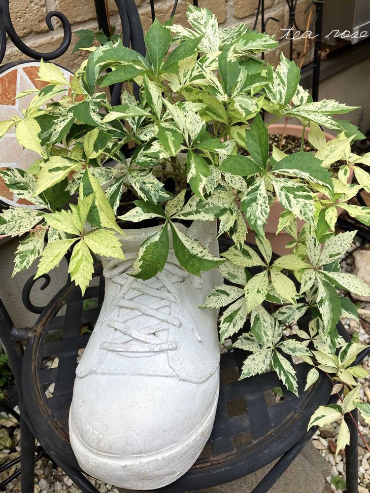 白いスニーカーの鉢、色んな植物を植えてきたけど、この子に落ち着きそう🤭